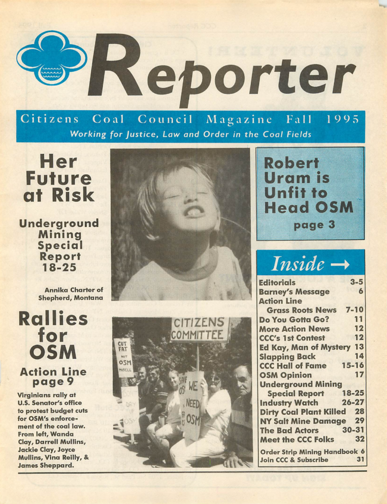 CCC had 30 member groups by the 20th anniversary of SMCRA in August of 1997. CCC started the “Jobs & Justice” campaign and obtained an additional $35 million for cleaning up abandoned mines (AML lands).